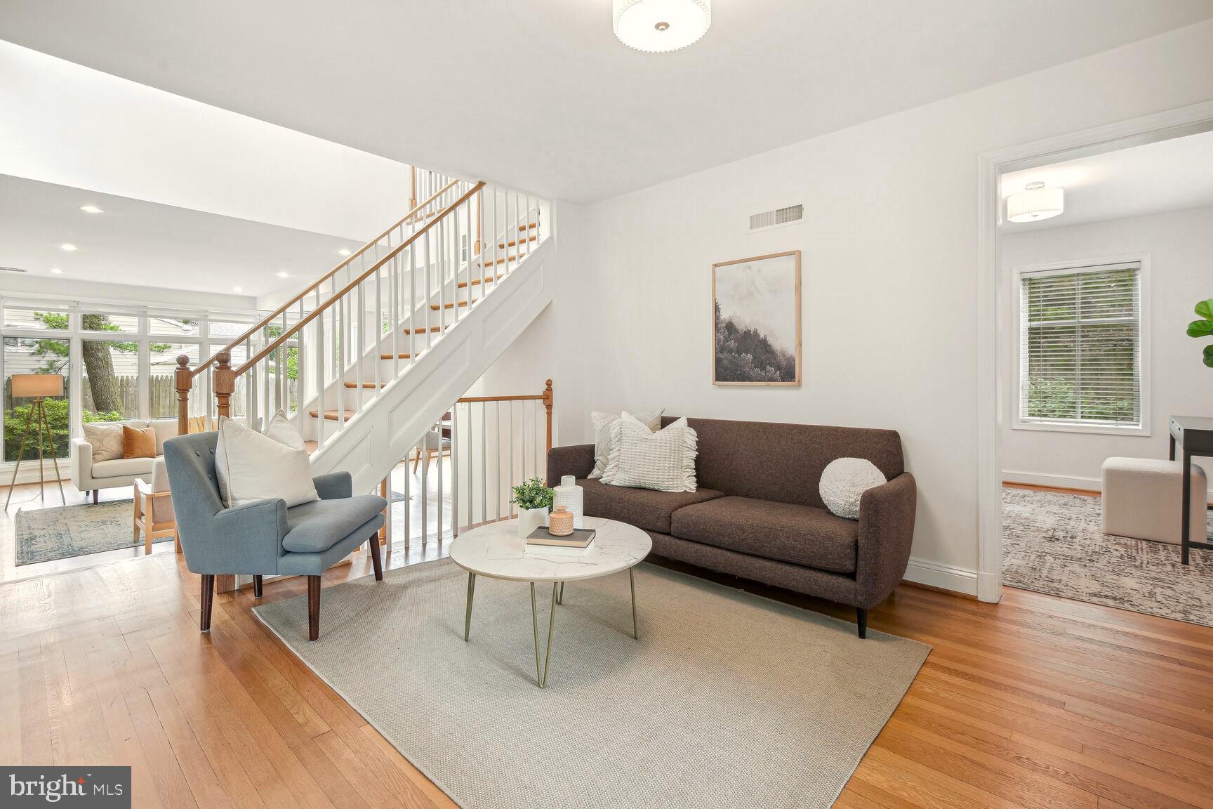 This one is special! Nestled in the heart of the Greenacres neighborhood, this expanded Colonial sparkles with natural light, has great flow and space. Enter this gem and you are in the foyer which leads to the living room with views to the stunning family room with 9 ft+ ceilings and a wall of windows overlooking the patio and garden. The kitchen is open to the family room with granite countertops and white cabinetry. Dining can be in the original separate dining room (now an office) or in the family room where there is the perfect table space. Upstairs is a true primary suite with vaulted ceilings, a large walk-in closet and ensuite bathroom with walk-in shower. Two additional bedrooms and a hall bath complete the upstairs. The lower level has the recreation room, laundry and plenty of storage space. Freshly painted and with wood floors that shine, this home is move in ready! Friendship Heights Metro is right up the street, the bus stop is even closer. Easy access to DC, Bethesda, and Virginia An added bonus is the new Westbard Square development, Millie's The Heights Eatery, 2 Whole Foods stores and the Capitol Crescent Trail all steps away.