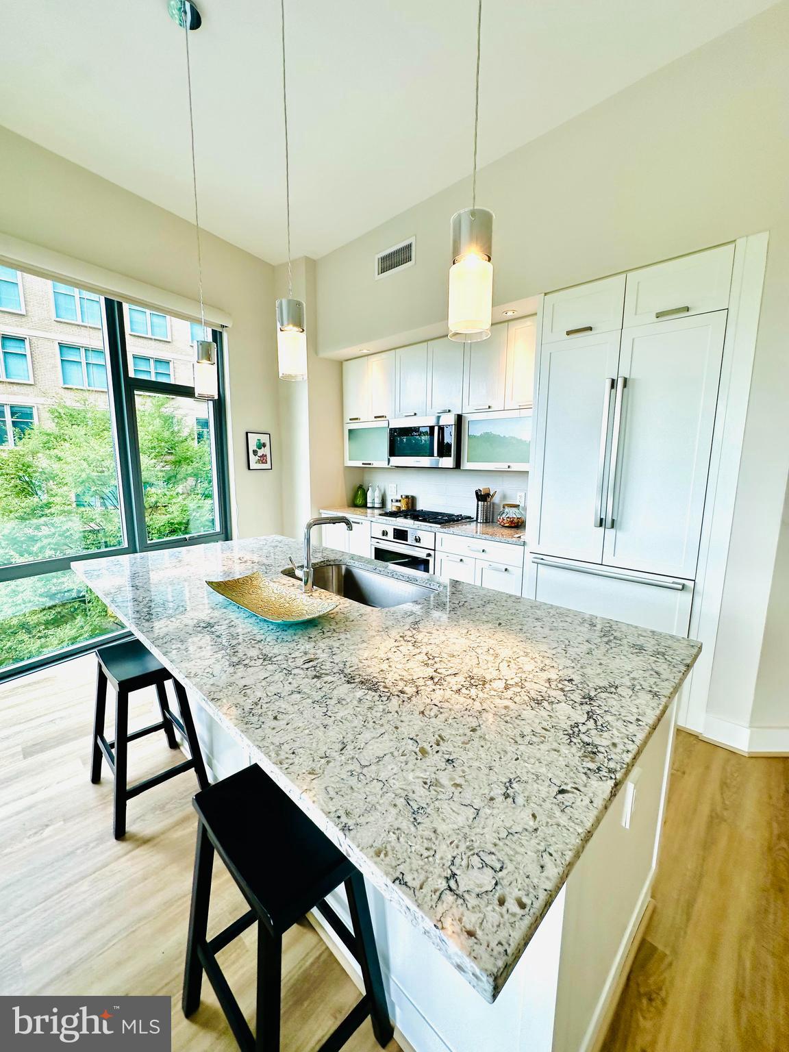 INCREDIBLE PRICE. This is a one of a kind. It is the ONLY 1 bedroom + queen sized den unit that sits on the coveted SW corner. It also has a large balcony which offers incredible saturating natural light which is more vibrant in person. Offering soothing views over the trees, an oversized balcony, and floor to ceiling windows, this one is not to be beat. In the heart of downtown Bethesda, The Cheval offers the highest luxury lifestyle with a 24 hour desk attendant, elegant lobby and greeting room, a well appointed gym, and a substantial rooftop terrace offering incredible views and multiple well appointed areas for entertaining. The unit has rare high ceilings, immense windows with custom automatic blinds, fresh appliances, elegant finishes and, as a bonus, your parking space (406) is just feet away from your front door. This price point for this floorplan and this view is unmatched for a luxury condominium in Bethesda. Do not hesitate as this one shouldn't last long.