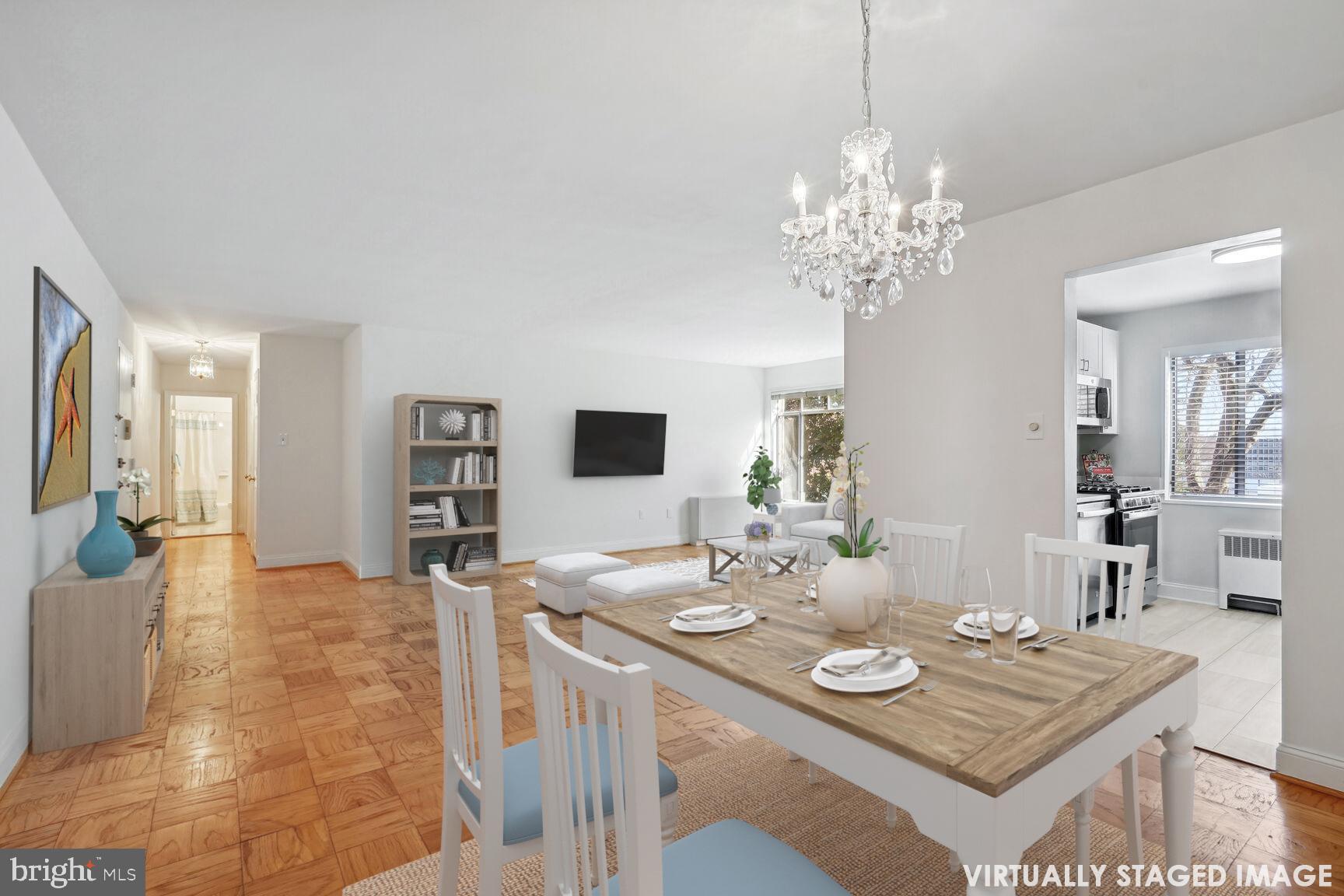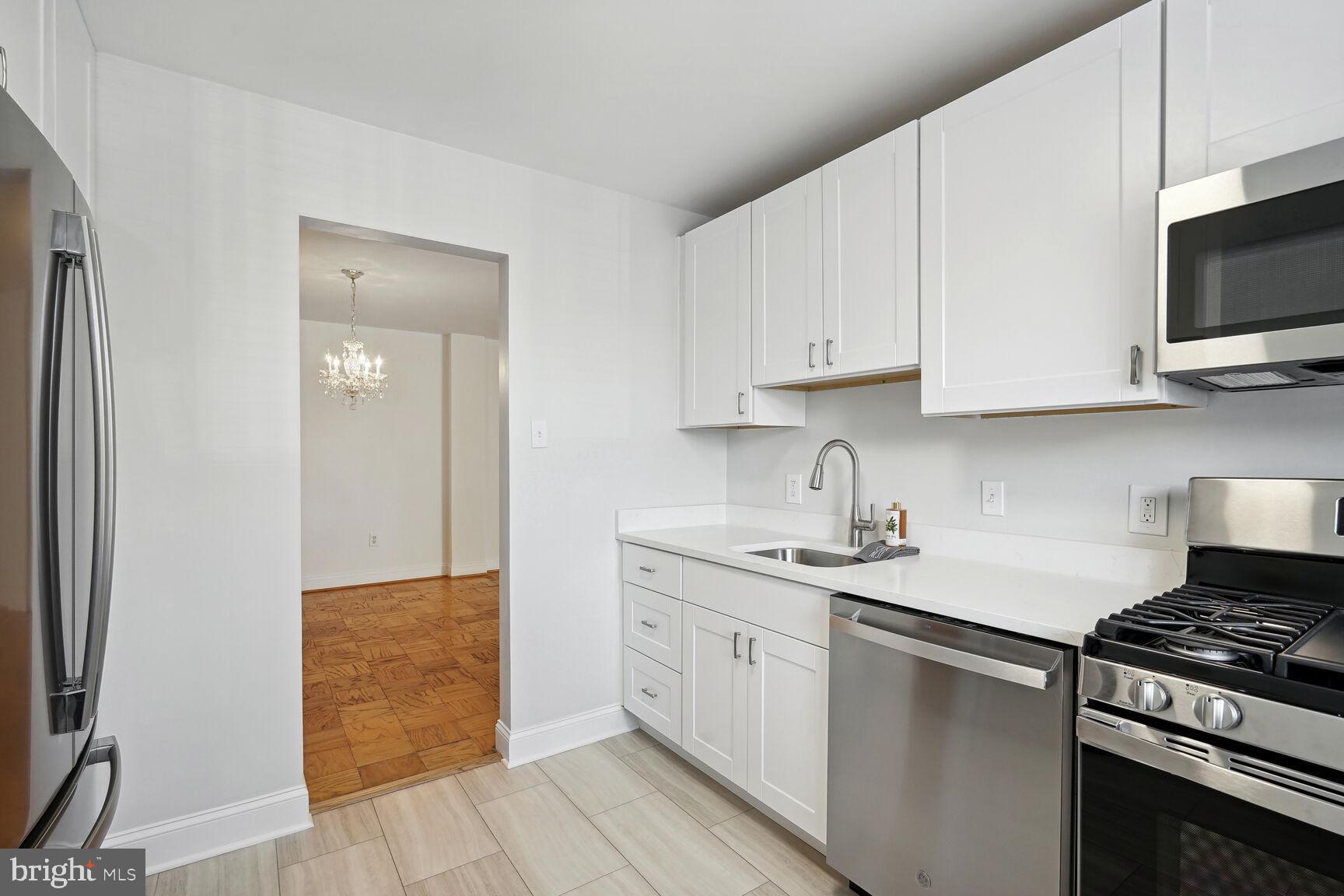 Priced to Sell! All new kitchen! This very large one bedroom condo (993 sq ft) is located in convenient Kenwood Place. Enter this unit and you find an entertaining size living and dining room plus a brand new kitchen. The kitchen has all stainless steel appliances, a pantry, quartz countertops, new white Shaker-style cabinets and luxury vinyl flooring. Down the hall towards the bedroom you have a coat closet and linen closet. The bedroom is oversized with a walk-in closet. The updated bathroom has neutral tile, a nice vanity with storage and the tub/shower has dual shower heads. Extra storage. The laundry room is steps from your front door. Community amenities include concierge, bike storage, a party/community room, a gym, outdoor pool, sundeck, grilling area and a front lawn/park area. Utilities are included in the monthly fee. Kenwood Place is adjacent to Westbard Square which is being redeveloped. The first phase is complete with a new Giant Food, and new tenants coming soon include Piccoli Piatti Pizzeria, Tatte Bakery & Cafe, Silver & Sons BBQ, Stretch Zone and Westbard Dental. Kenwood Place will be gated as part of this project. Also convenient to Whole Foods, the Capital Crescent Trail, Little Falls Library and major commuter routes.