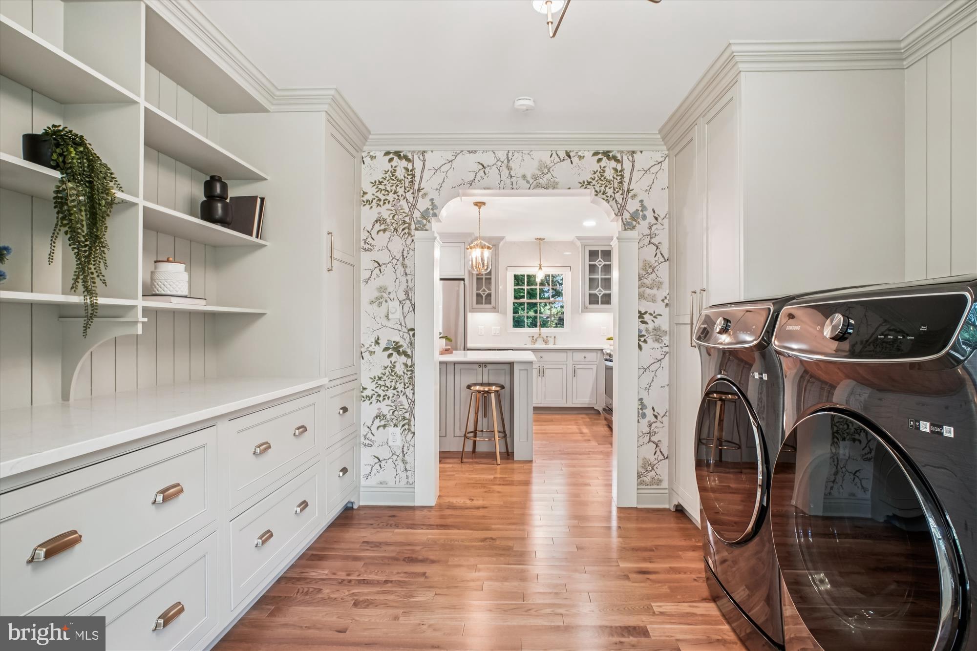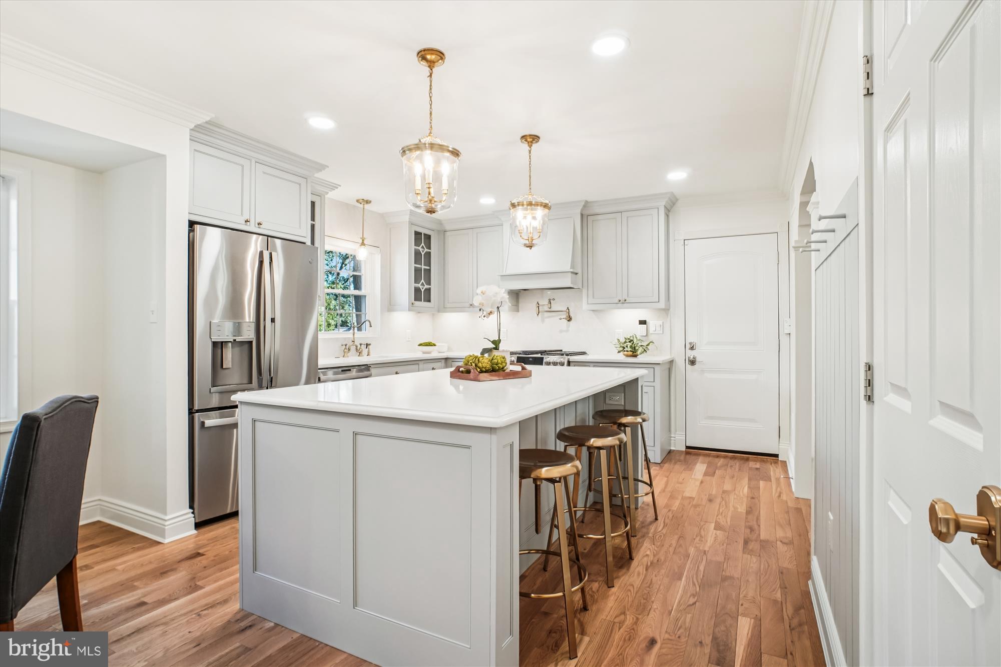 Price Adjustment on this stunning Colonial is nestled on a quiet cul-de-sac and sits on a 14,455 sq ft lot. Meticulous detail was put into this stunningly renovated home, filled with charm this home has an open floor plan on the main with great circular flow. New hardwood flooring, recessed lighting, new windows, custom Hunter Douglas shades and a wood burning fireplace are just a few of the features of the living room and dining area. The all-season sunroom with gas fireplace and mini-split is the perfect oasis overlooking the peaceful backyard and new state wrap-around patio. The kitchen is a chefs dream with custom cabinetry, oversized island, quartz countertops, upgraded appliances, over the stove pasta filler and beverage/ coffee station. The perfect pantry/ laundry room completes this special space with more custom cabinetry that includes built-in drying racks and dual load washing machine From the kitchen, there is easy access to the large two car garage with EV charging station. Upstairs are four large bedrooms including a primary suite with walk-in closet, custom built-ins, another closet, laundry chute, recessed lighting, Hunter Douglas shades and attached bath with soaking tub, walk-in shower and double sinks. The new hardwood floors are continued upstairs, and a renovated hall bath and large linen closet complete this level. Downstairs is fully finished and has 8' ceilings, recessed lighting, new luxury vinyl flooring and features a large den/family room with another woodburning fireplace, an exercise room, a guest room/office space with an attached full bath. Detached shed for all your gardening needs.