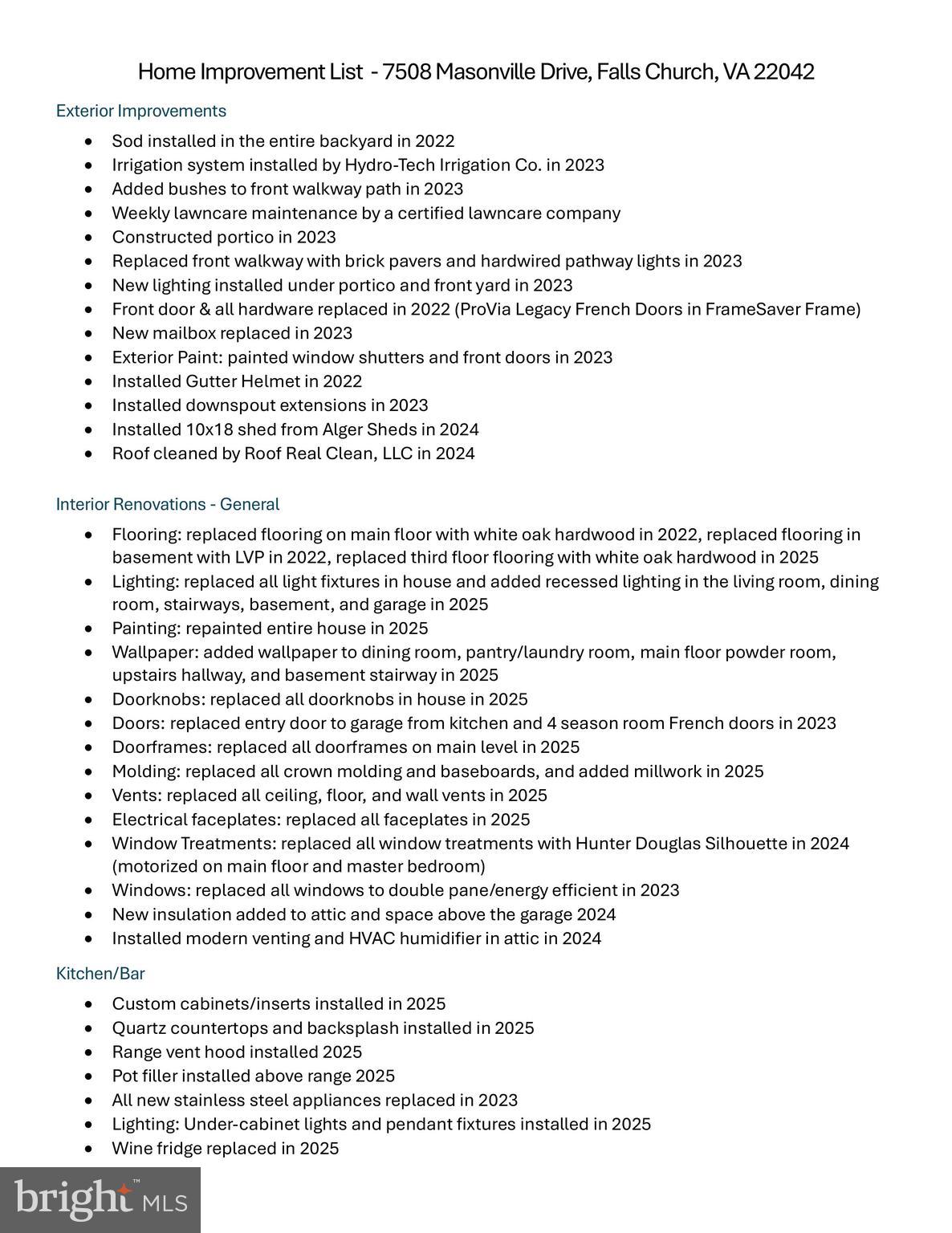 The list with of improvements is included with documents. All of this and so convenient to commuter routes, INOVA Fairfax hospital, schools, shopping and more. Square footage is based on floorplans and is not guaranteed.